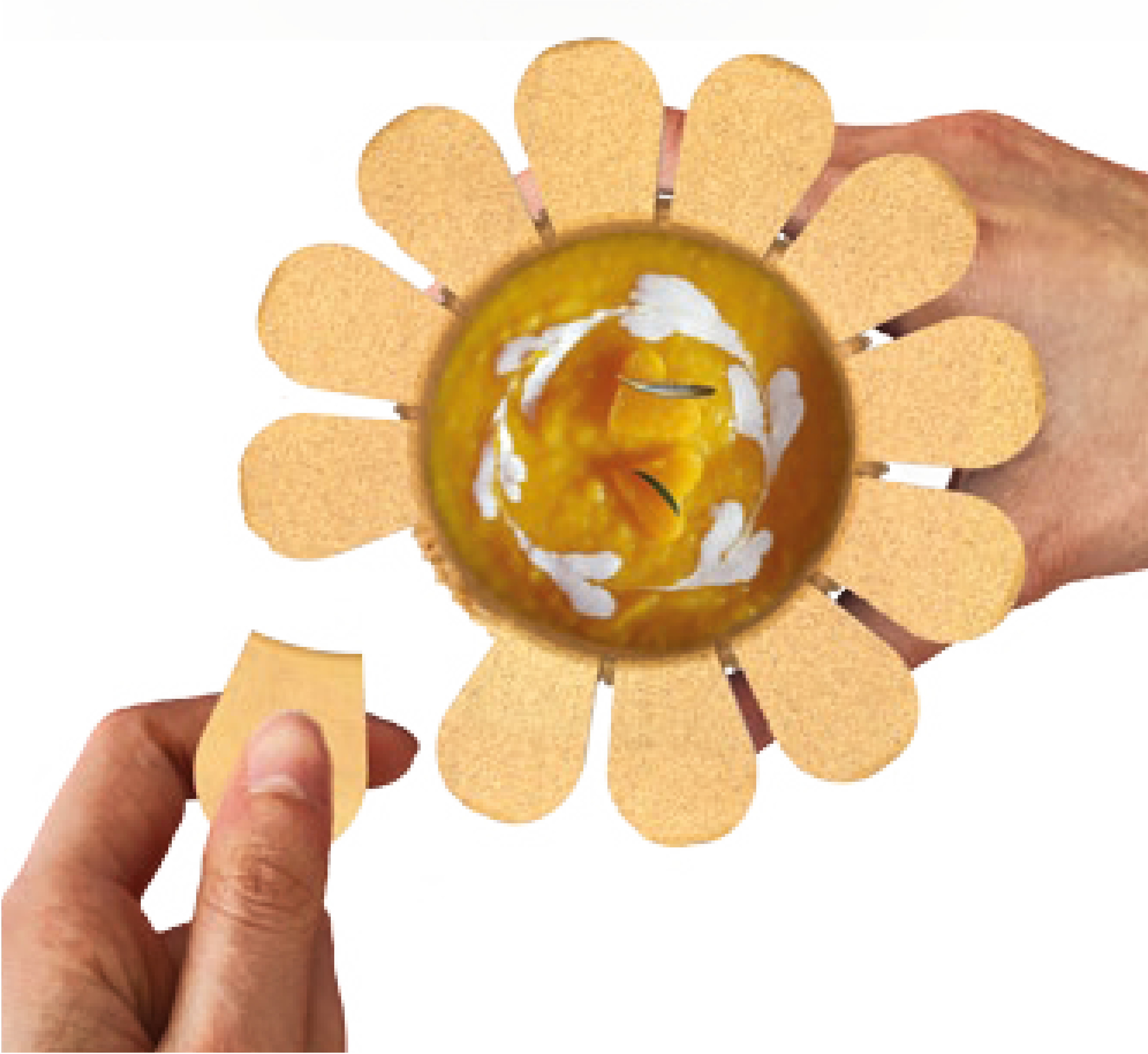 Daisy è una simpatica cialda di pane a forma di margherita (da qui deriva il nome). Pensata per consumare zuppe o vellutate "to go". Una volta consumata la zuppa al suo interno, Daisy è completamente edibile!